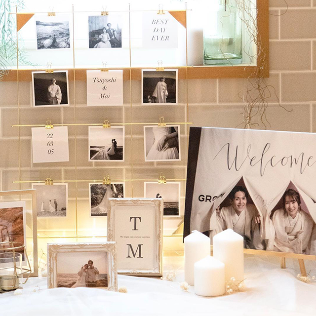 ウェルカムスペースの写真の飾り方アイデア36選!オシャレに飾るコツや写真の印刷方法もご紹介結婚ラジオ結婚スタイルマガジン。