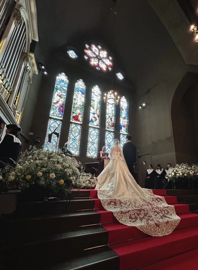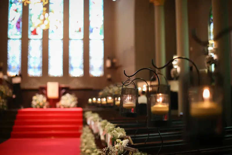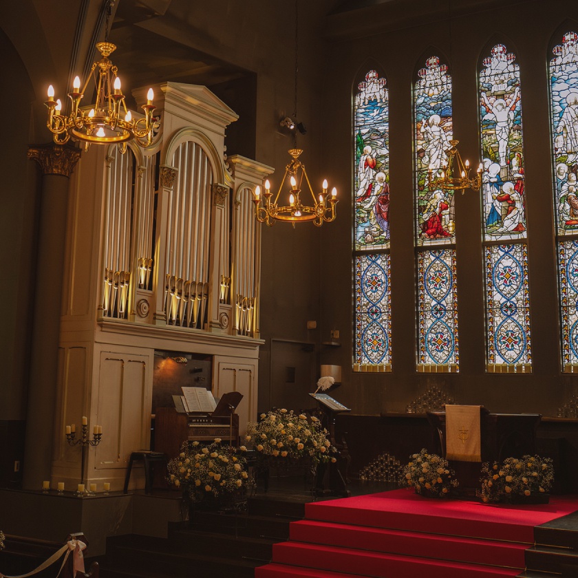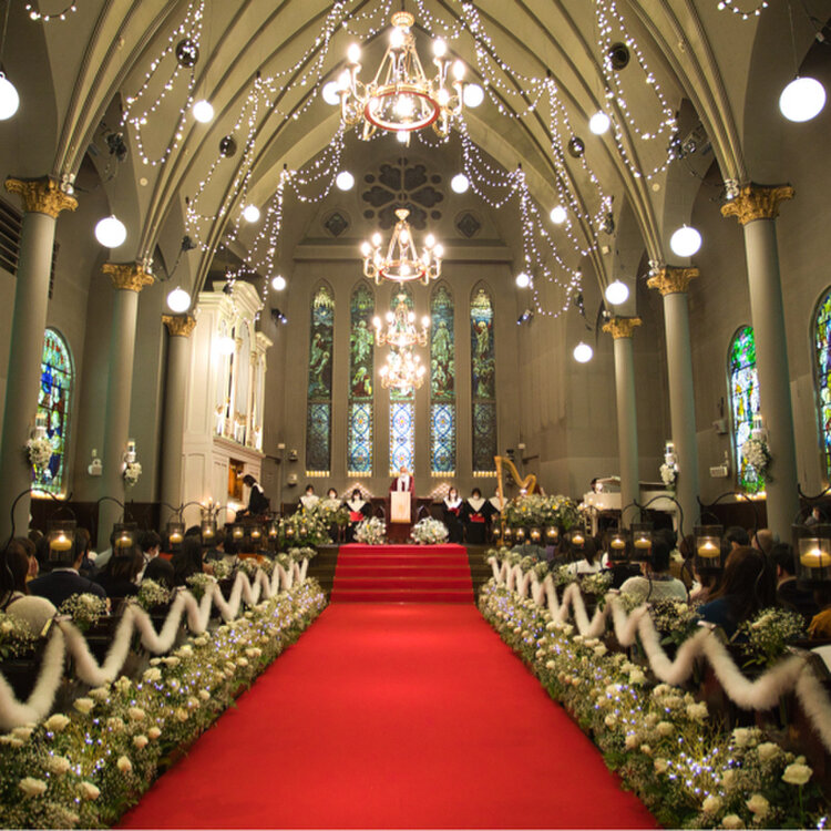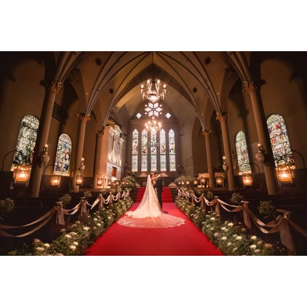 教会が素敵でアットホームな結婚式ができる式場」赤い絨毯にステンドグラスが素敵な王道のチャペルです。ステンド 口コミ・評判宮の森フランセス教会ウエディングパーク。