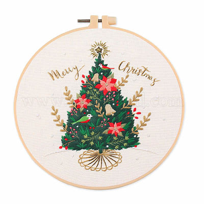 DIY クリスマス刺繍キット 刺繍布と糸を含む 針 刺繍フープ 指示シート クリスマスリース 300x300mmの通販 -PandaHall パンダホール。