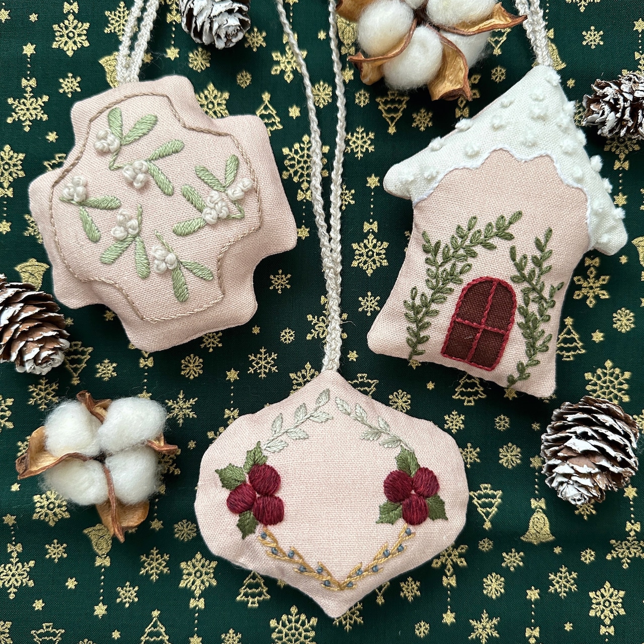 刺繍キット クリスマスオーナメント・ヤドリギMarguerite刺繍教室。
