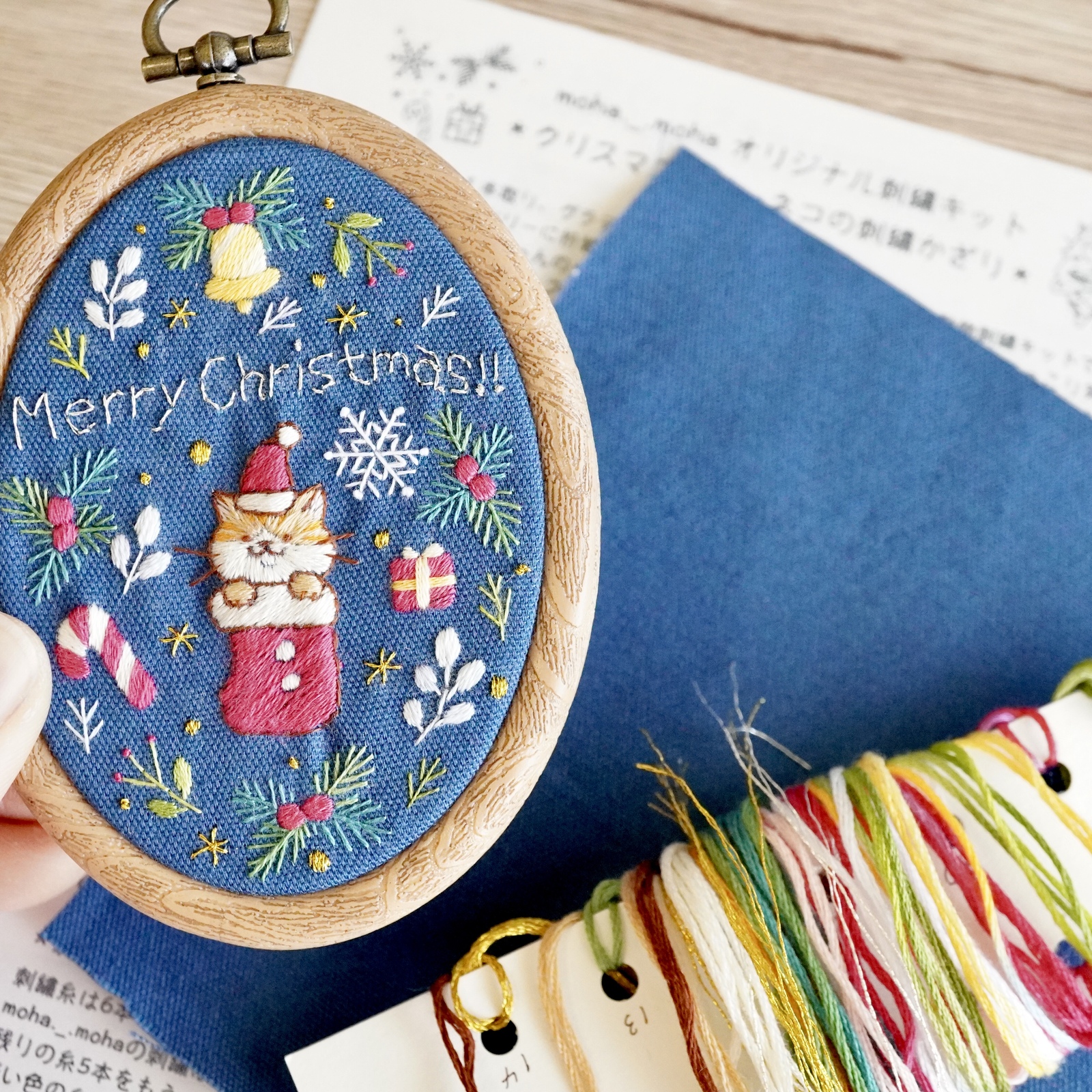 刺繍キット3点セット クリスマスネコちゃん手刺繍飾り キット moha._.moha 通販 15066735Creema クリーマ。