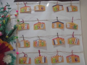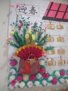 図工人手作り紙工作「門松」でお正月をテーマに飾る1月の壁面図工人。