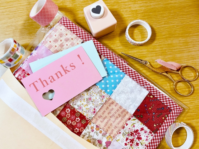 100均貼れる布で 素敵なメッセージカード 作り方。