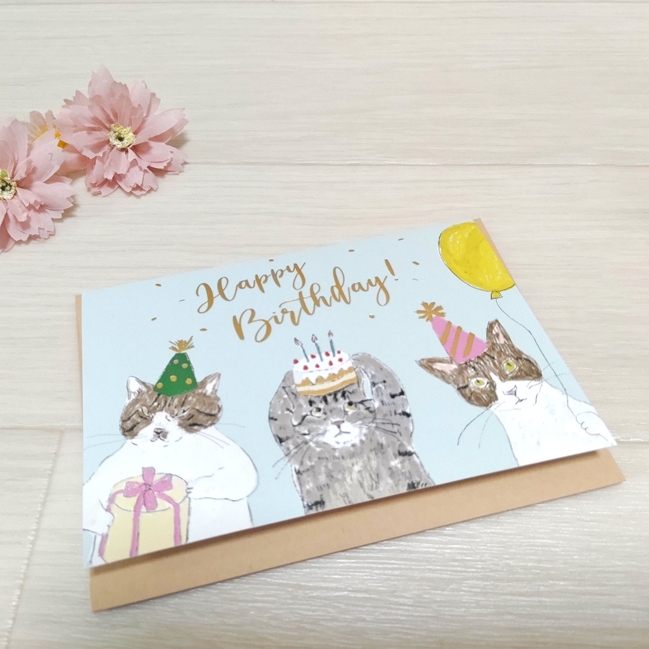 猫 バースデーカード 誕生日 カード ねこ ネコ 猫柄 かわいい おしゃれ 封筒付き 日本製 お祝い 記念日 ギフト プレゼント 猫好きねこ好き 148猫グッズ・猫雑貨 専門店 ChatsChats シェシェ。