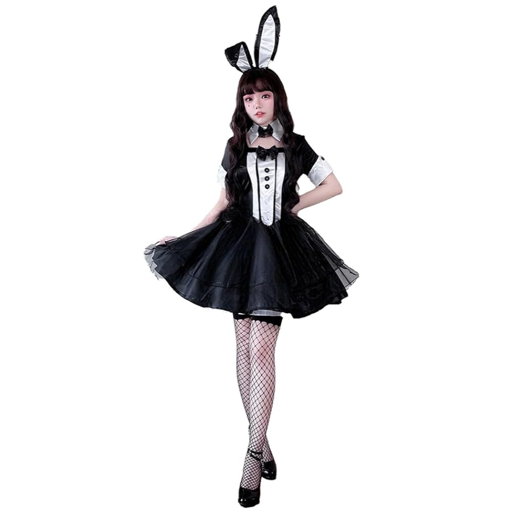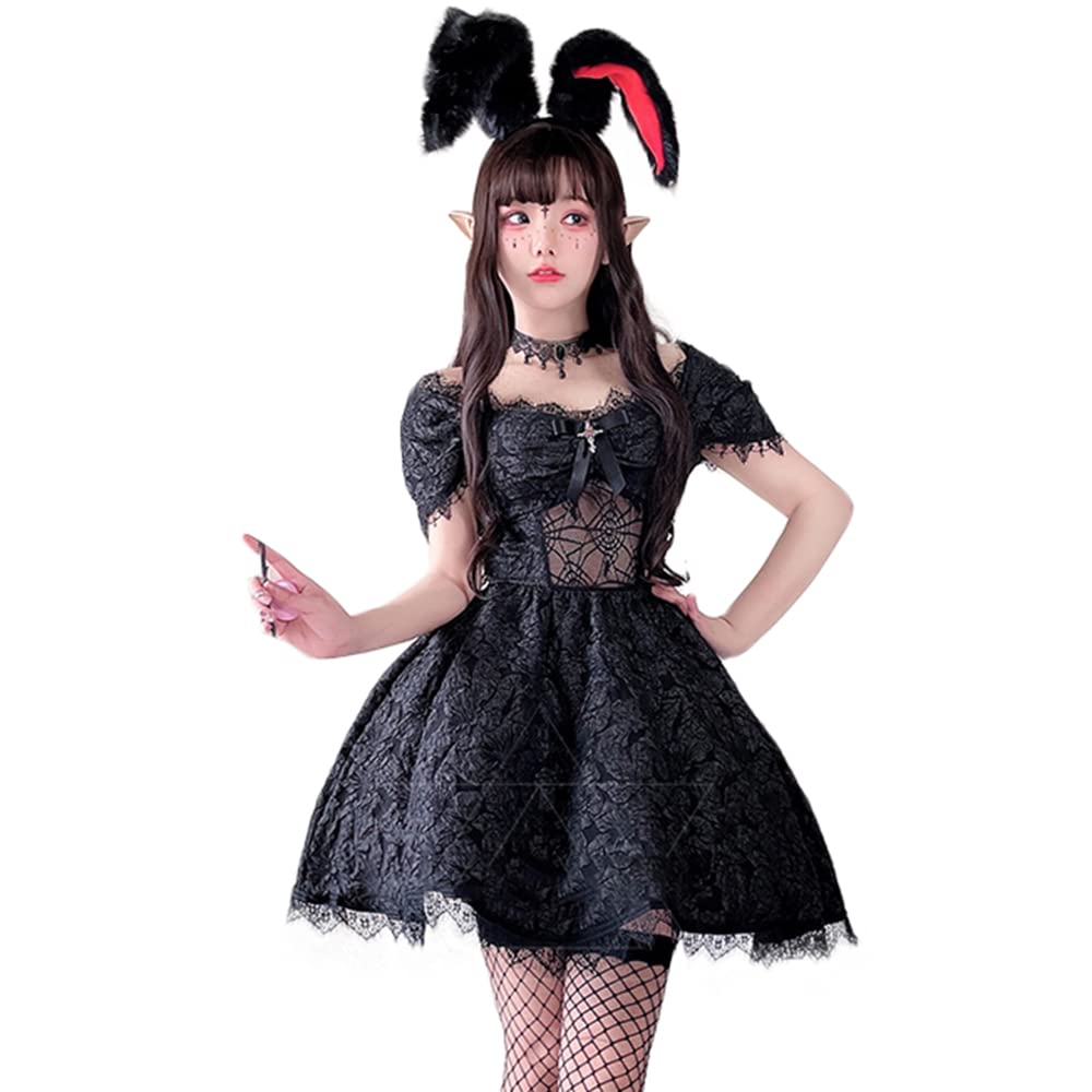 Amazon.co.jp:SSUPTEMBER2バニーガール 魔女 悪魔 コスプレ 衣装 ハロウィン仮装 ウィッチ 魔法使い ゴスロリワンピース ウサギミミ ホラー 恐怖 ゴシック コスチューム パーティー カーニバル 学園祭 文化祭 イベント 演劇 大人用 黒S,ワンピース+ウサギミミ+。