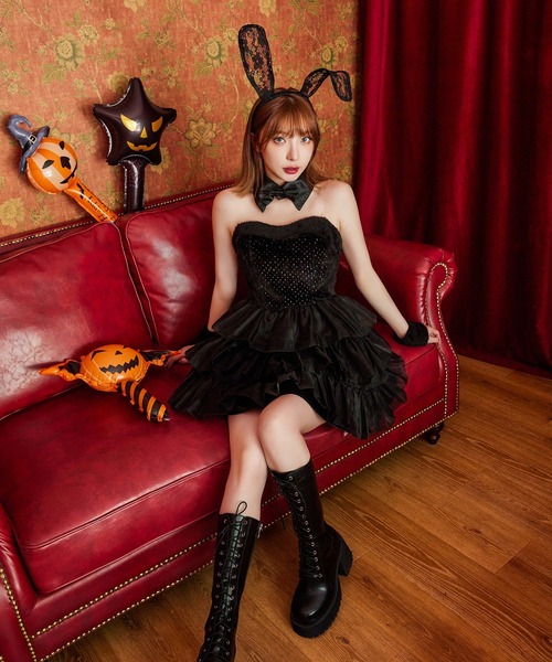 ハロウィンバニービジューフレアワンピースコスプレ5点セットXS-Mサイズ 2カラーOF01- ドレスショップJewels ジュエルズ。