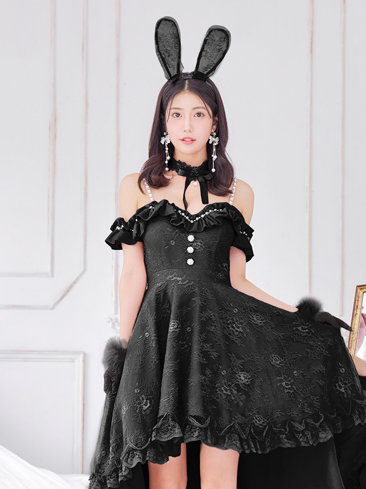 即日発送 ブラックドットレースバニーコスプレ sugar nineハロウィン5点セットXS-Lサイズ 1カラーOF01-キャバドレス専門店 sugarシュガー。