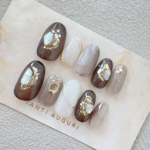ブラウン ニュアンス グレージュ グレー 綺麗め 上品 結婚式 ブライダル お呼ばれ 成人式 ネイルチップ つけ爪 ネイルチップ つけ爪MOMO✺Nail 通販 14690329Creema クリーマ。