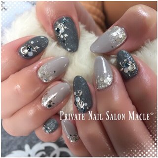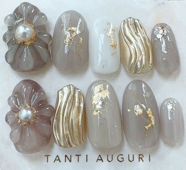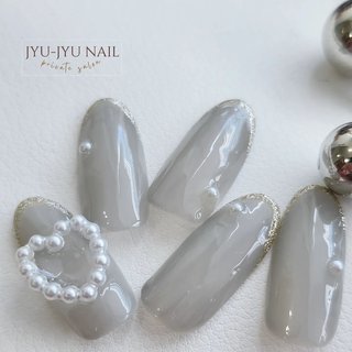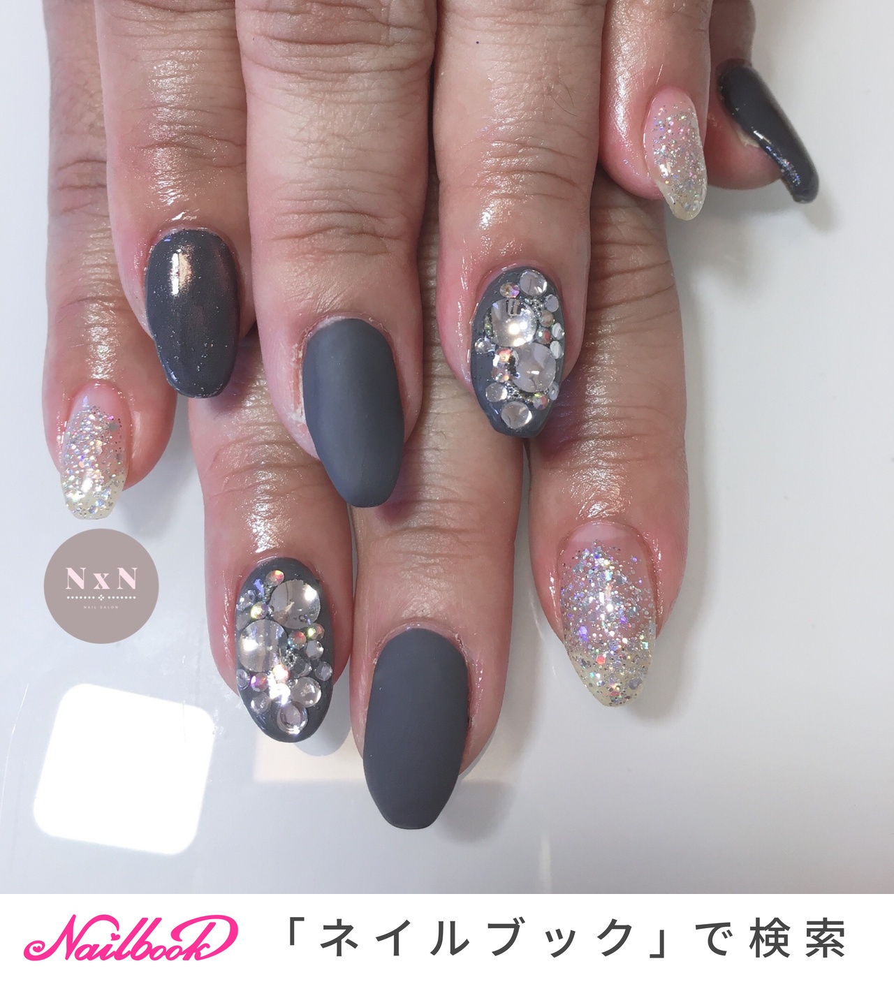 グレー結婚式お呼ばれネイルのネイルデザインネイルブック。