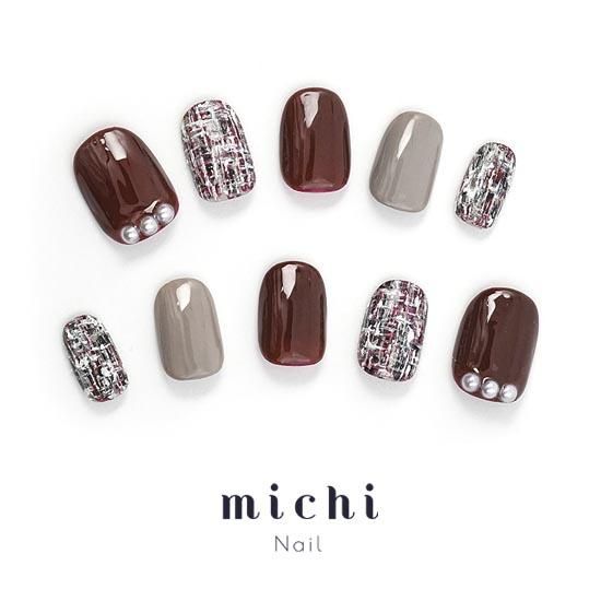 グレー×ボルドーのざっくりツイードネイル- ネイルチップ専門店ミチネイル。