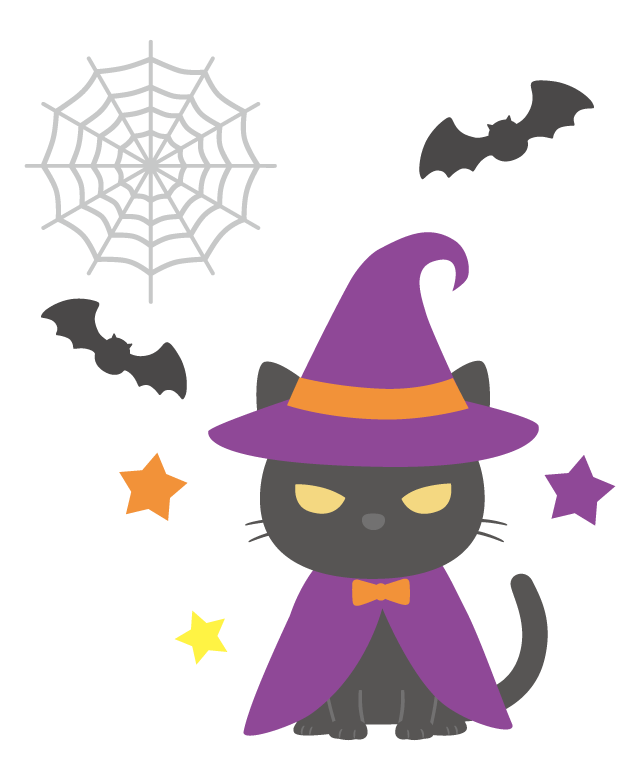 魔法使いの猫とコウモリのハロウィンイラスト無料のフリー素材 イラストエイト。