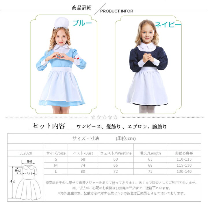 種類8:ネイビー L 子供 親子ペア ハロウィンナースコスチューム 4点セットT楽天市場 子供 ハロウィン衣装 看護婦 看護師 ナース服コスプレ 子供服 女の子 4点セット クラシカルナース コスチューム 看護士 メイド服 ワンピース 可愛い 衣装 仮装 ギフト ドレス。