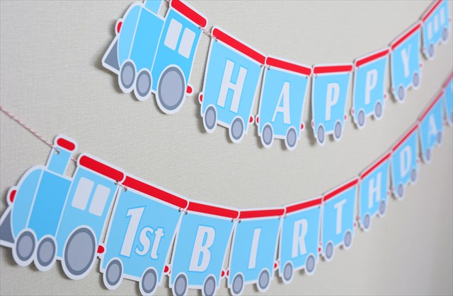 機関車モチーフの1歳誕生日フォトバナー ガーランド の作り方。