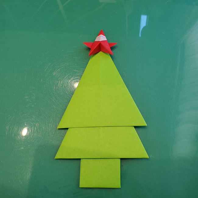 簡単•折り紙 立体☆1枚でできる星付きクリスマスツリーの作り方。