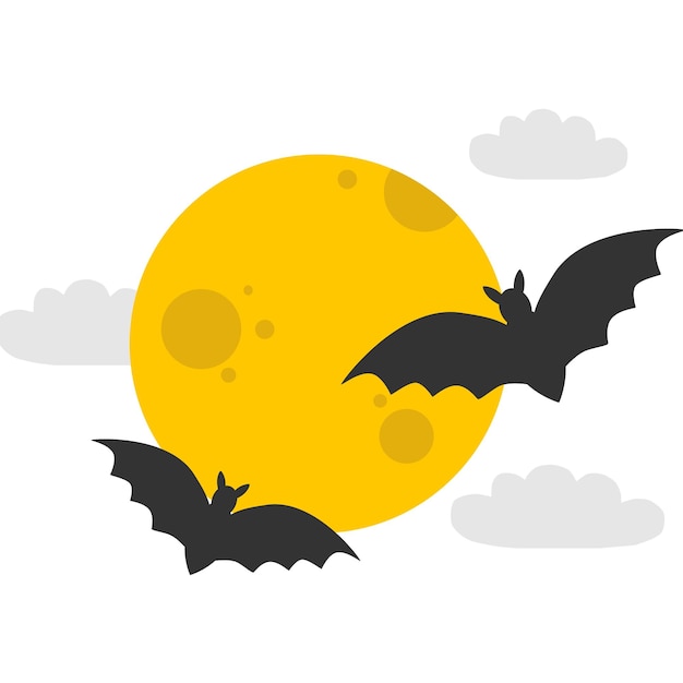 コウモリと月のハロウィンイラストPremiumベクトル素材。