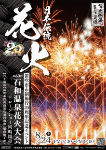 笛吹市市制施行20周年記念「第60回石和温泉花火大会」チラシ - 甲府経済新聞。