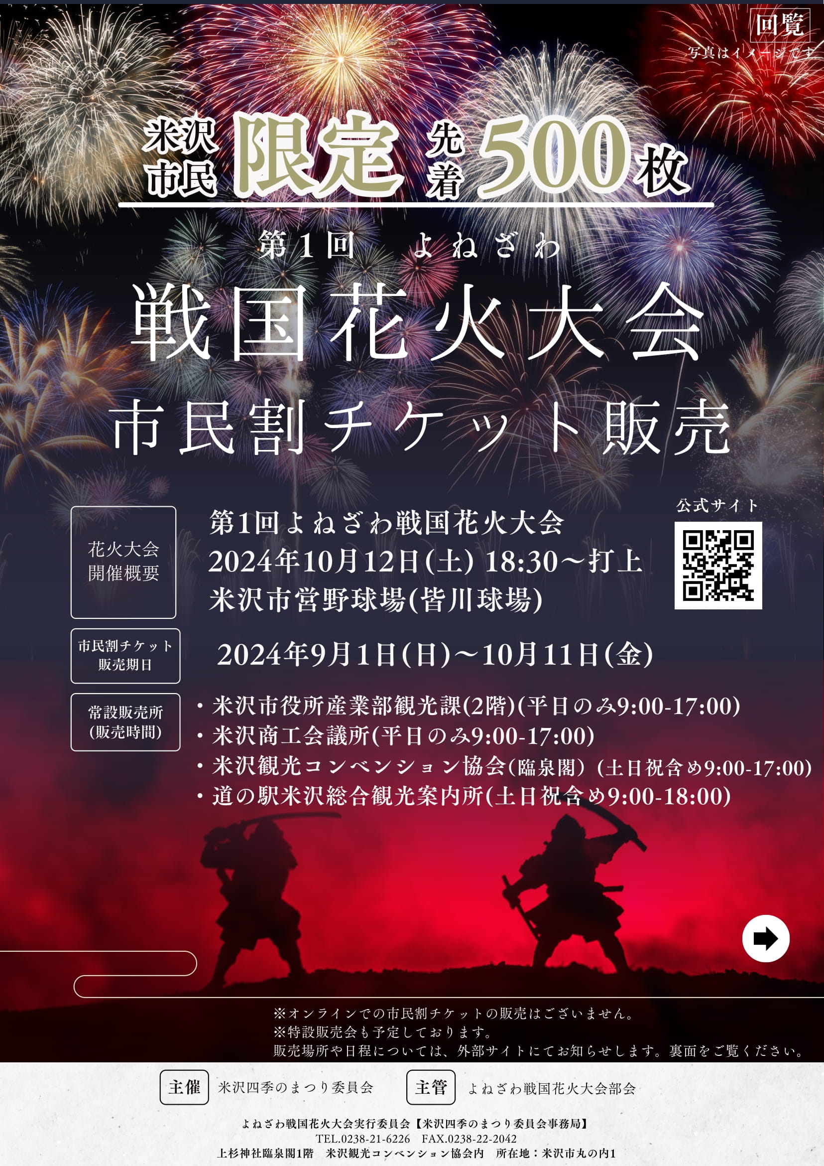 第1回よねざわ戦国花火大会 市民割チケット9 1 日 ~販売開始! 一般チケット販売8 10~米沢観光ナビ。