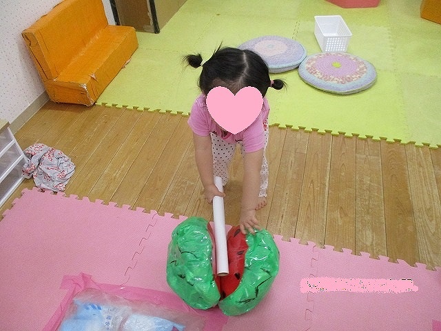 スイカ割り&新聞紙遊び♪学校法人清泉学園 幼保連携型 ゆりかご認定こども園 ゆりかご幼稚園・ゆりかご保育園 宮城県仙台市太白区。