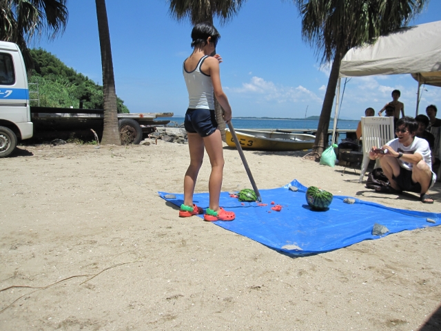スイカ割り。