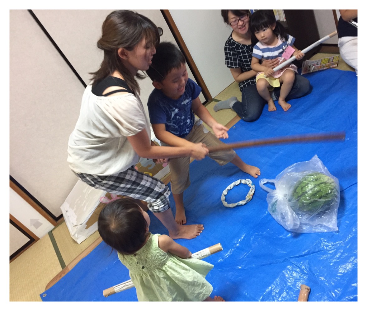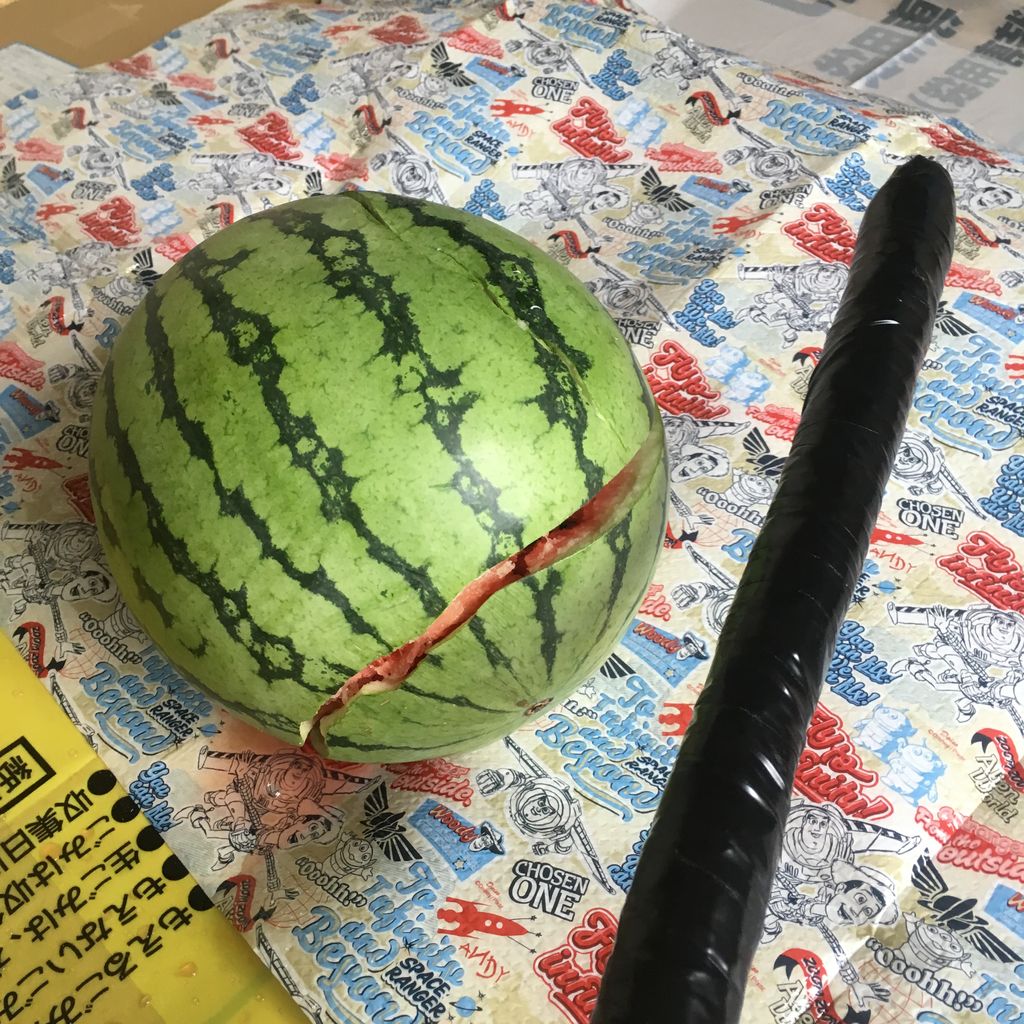 スイカ割り 家の中でも割れますよ?新聞紙で作った手作り棒が想像以上の活躍! : ポーカーfaceが笑うまで。
