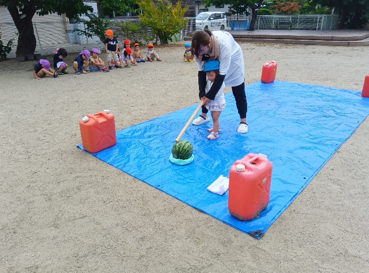 💛7月27日💛『スイカ割りpartⅡ🍉』にじいろ保育園ブログ。
