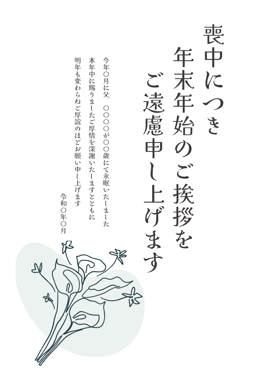 喪中はがき ラインアート花の無料喪中はがきテンプレート 16554 - デザインAC。