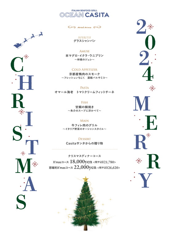 Casita Xmas Dinner 2024 のご案内レストランカシータ 青山・表参道。