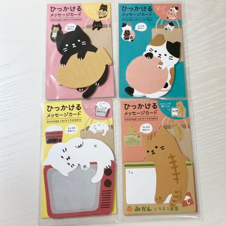 セリア ひっかけるメッセージカード ゆるねこ 4種 - メルカリ。