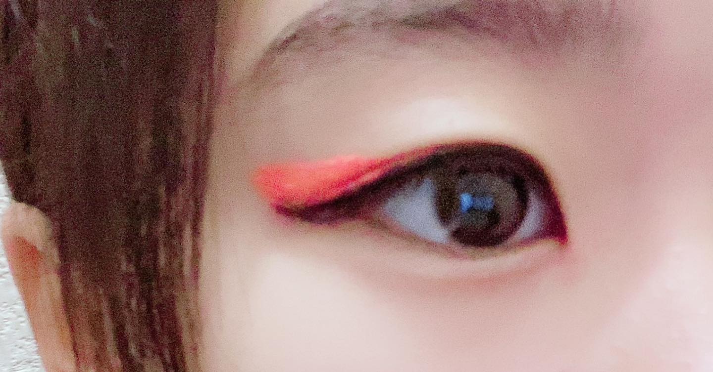 ちこえ on X: "赤担当の夏ライブ参戦メイク🍉 赤シャドウをあまり普段使いするイメージは無いかもしれませんが、寒色と比べたらかなり扱いやすいのでおすすめ。粉の量を少なめにすることで、あれ ほろ酔い?な"トロンと感"が出てかわいい。目尻のラインと目頭のラメで。