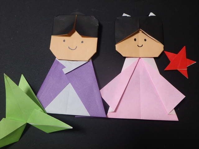 七夕製作ー折り紙で簡単!「織姫と彦星①」。