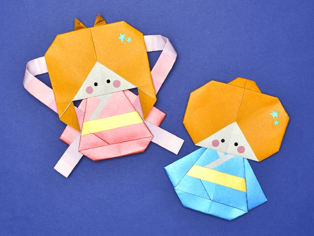 かわいい折り紙 七夕「織姫と彦星」の折り方 おりがみの時間。