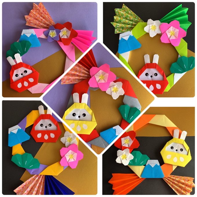Amazon.co.jp: 折り紙リース 1月 お正月飾り 干支 壁面飾り : おもちゃ。
