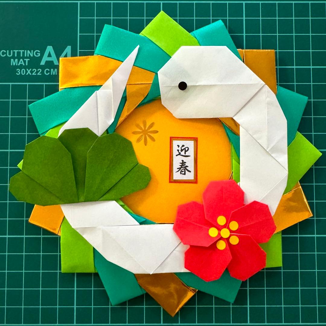 折り紙 お正月飾りリース ★ ハンドメイド 壁面飾り 新年 巳年 迎春。