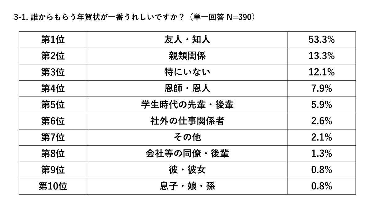 もらってうれしい新年の挨拶、3位メール、2位年賀状、1位は?@DIME アットダイム。