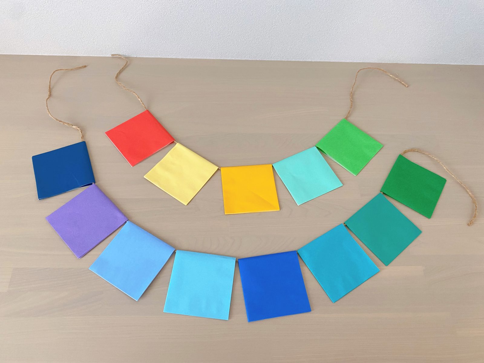 折り紙で簡単にできる!ガーランドの作り方と、色の選び方 お誕生日パーティの飾り付け - 心を楽に、シンプルライフ。