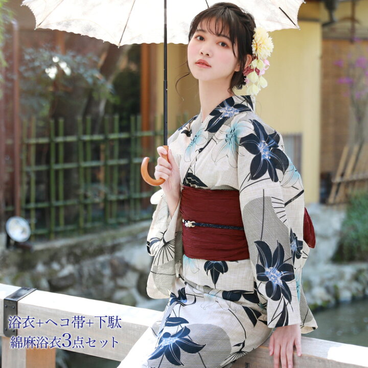 麻 ゆかた帯 楽天市場9 12 10:00〜9 16 08:59まで最大1,000円OFFクーポン 浴衣 セット レディース レトロ 上質高級変わり織り綿麻浴衣 3点セット「生成り地に百合とうちわ」浴衣 生成り 百合 ゆり うちわ 兵児帯 ヘコ帯 浴衣帯 赤 白 あずき色 古典柄 大人モダン。