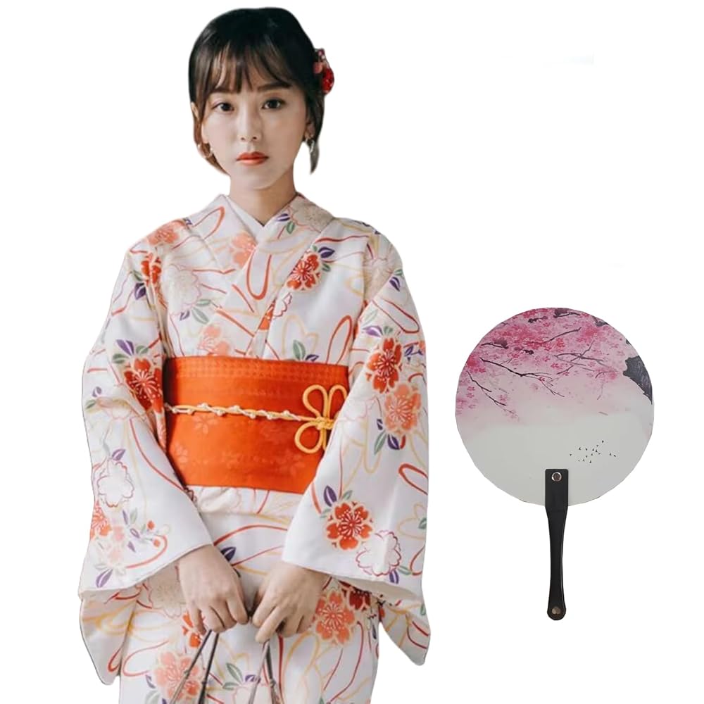 AmazonBUITVOZEレディース 浴衣+帯+団扇+髪飾り 4点セット 着物 花見 大人用 お仕立て上がり 作り帯 兵児帯フリーサイズホワイト, フリーサイズ浴衣 通販。