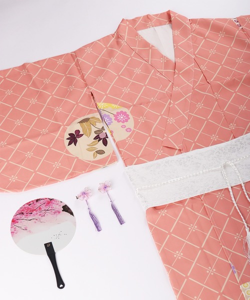 浴衣 レディース 浴衣 帯 髪飾り うちわ 4点セット レディース。