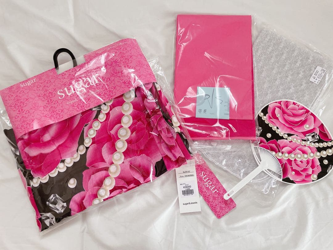 Sugar 浴衣、帯、レース、うちわ、4点セット。