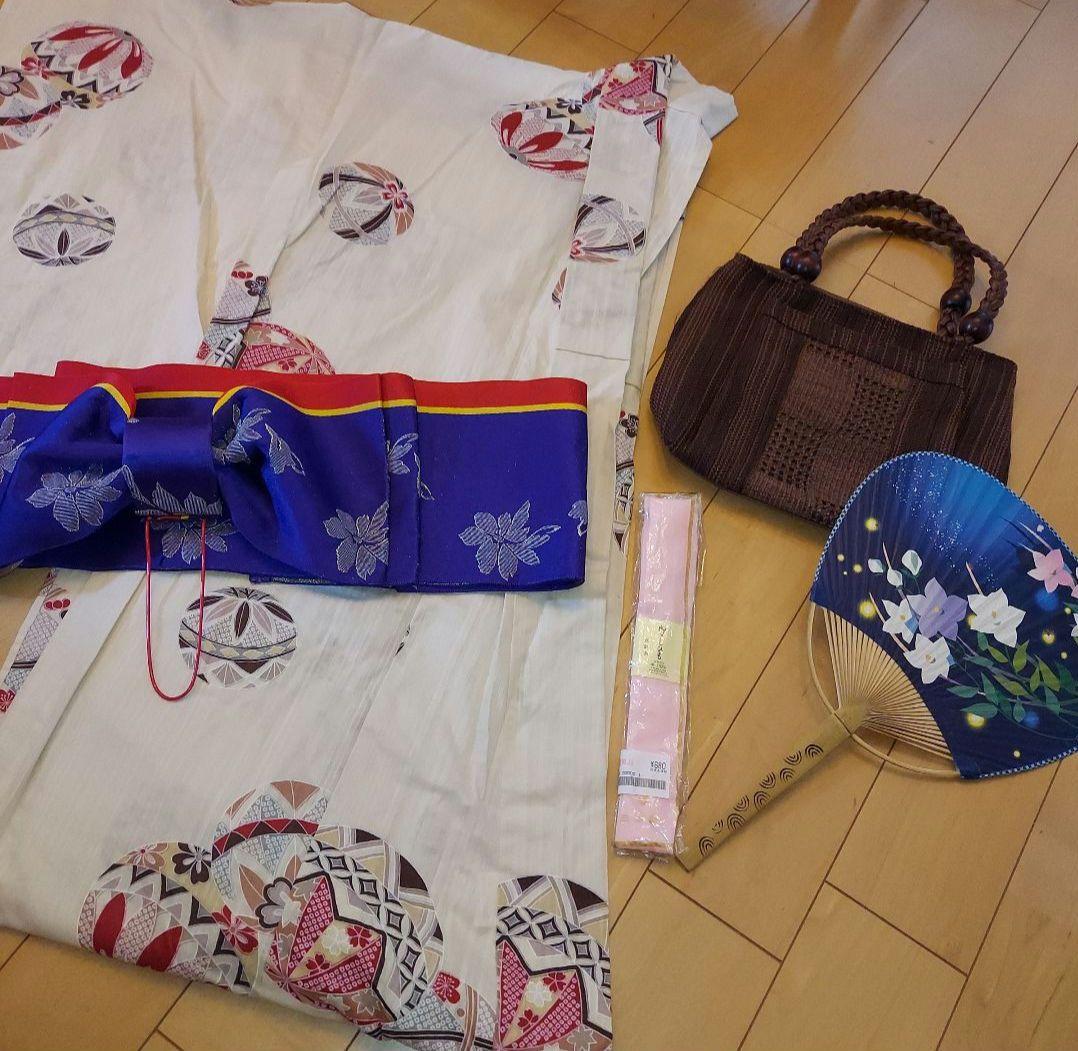 帯留セット付き芍薬浴衣・帯➕帯留セット付きうちわ浴衣・帯➕腰紐4。