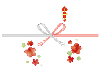 赤い花と水引をあしらったお祝い・お礼用のし紙テンプレート熨斗紙素材館。