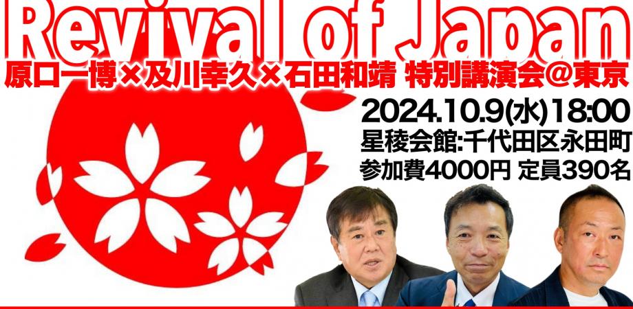 10 9東京 「日本再興〜みんなで考える日本と世界〜」原口一博×及川幸久×石田和靖 特別講演会Peatix。