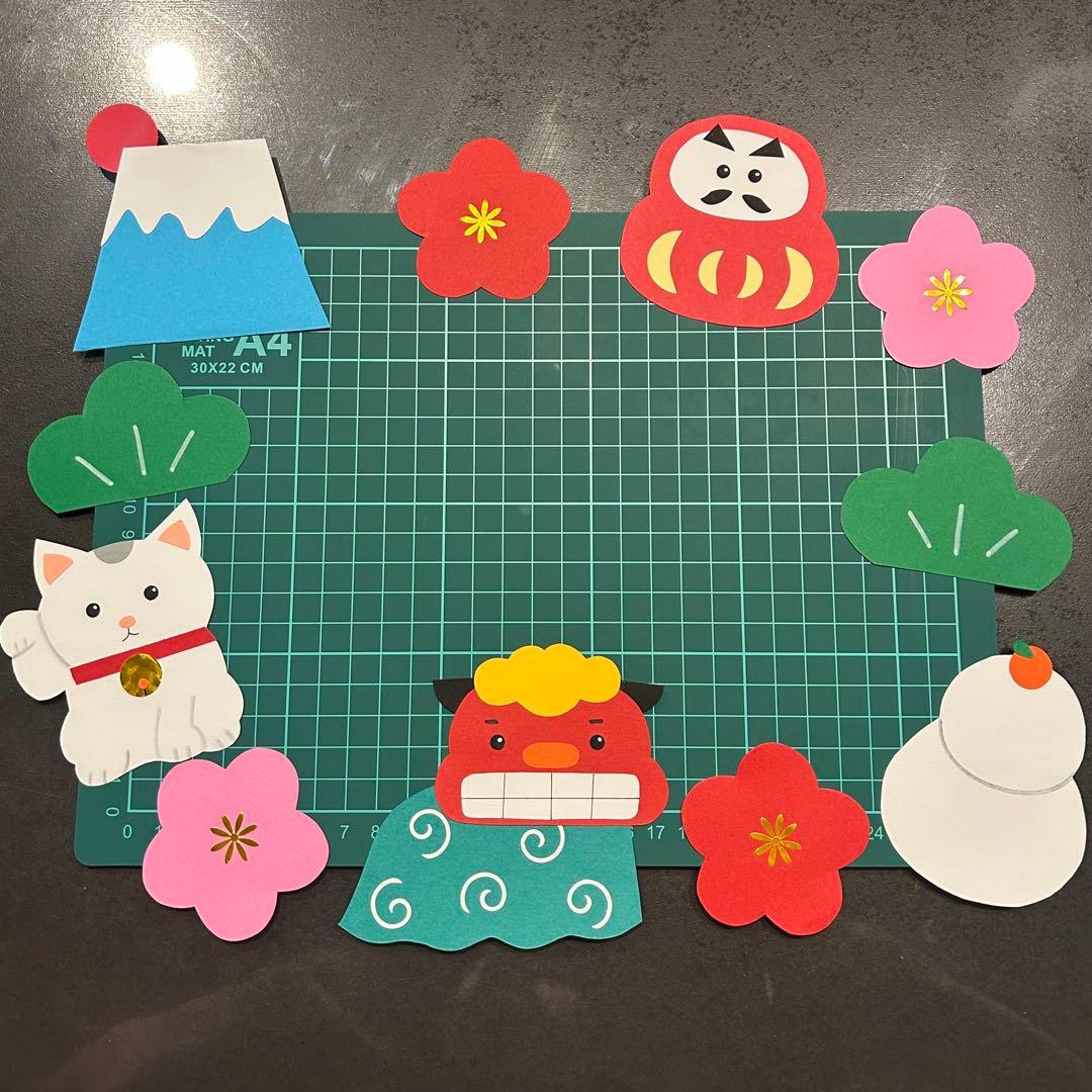 貼るだけ!かわいいお正月飾りを作ろう』終了しました。イラストレーター イシグロフミカnowanowanかわいい保育のイラスト・壁面。