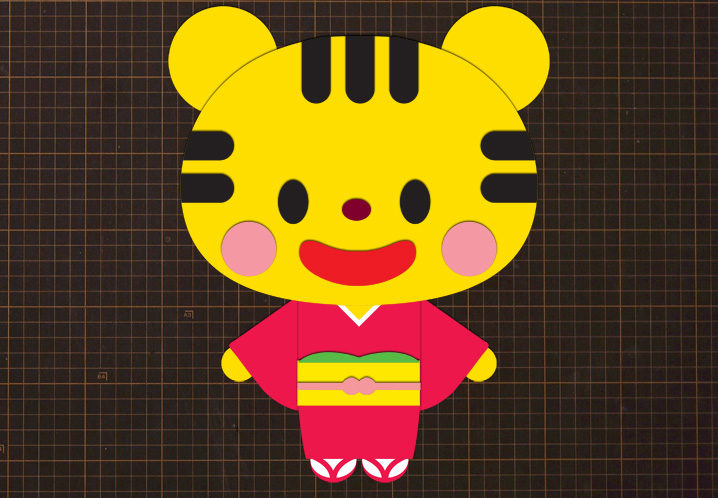 無料ダウンロード型紙で「とら 寅 正月 着物」の壁面飾りを作ってみた! 1月 春 冬 保育 介護施設 壁面装飾 製作壁面飾り型紙工房。