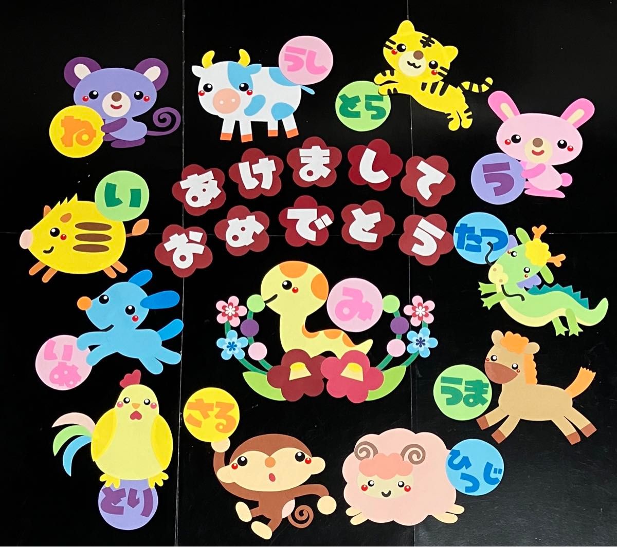 Amazon十二支 お正月壁面 壁面飾り 壁面装飾 保育 幼稚園正月飾りおもちゃ。