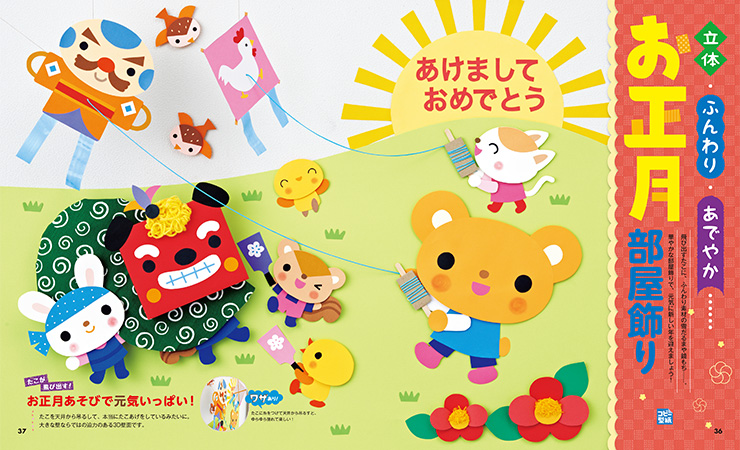 Amazon受注制作壁面飾り 保育 お正月 新年 獅子舞 凧 1月正月飾りおもちゃ。