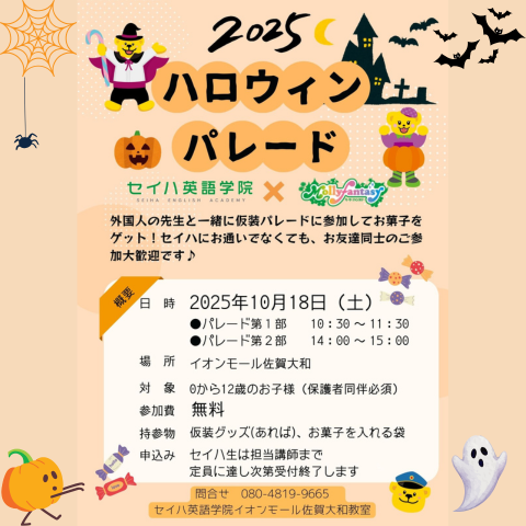 セイハ英語学院 ハロウィンパレードを実施します!イオン小郡ショッピングセンターイオン九州株式会社。
