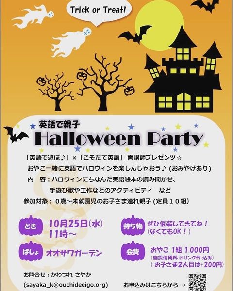 英語ハロウィンパーティのお知らせ滋賀県甲賀市の英会話教室 MKcreation オンラインレッスンで全国対応。