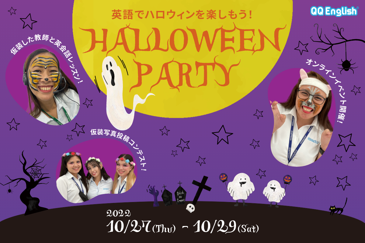 HALLOWEEN PARTY 2024 ハロウィンで学ぶ英語と異文化!大人も子共も仮装で楽しむQQEnglishの特別イベントを開催します。株式会社QQ Englishのプレスリリース。