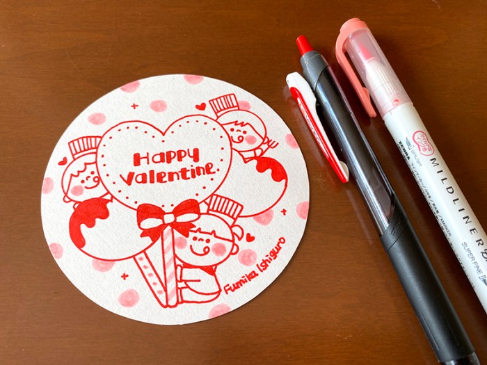 ボールペンで描いたホワイトデーのメッセージカードさきちん絵葉書。